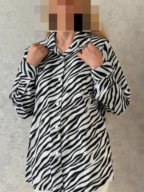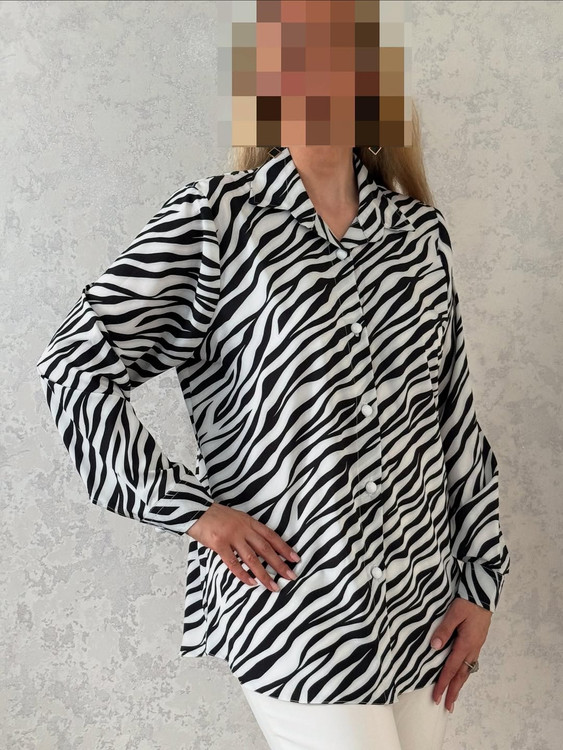 شومیز کرپ بوگاتی طرح سفید مشکی زنانه قد ۷۵